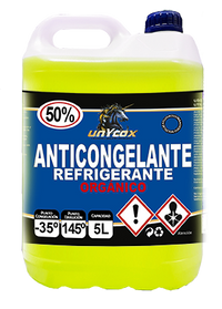 | ANTICONGELANTE 50% ORGÁNICO - Refrigerante diluido de uso directo para el mercado de la automoción y vehículo industrial. - No contiene nitritos, aminas, fosfatos ni boratos. - Anti cavitación. - No producen precipitados y por tanto mantiene los conductos siempre limpios. - Protege todas las partes que componen el circuito de refrigeración. - Gran capacidad de transmitir el calor a la atmósfera. - Aumento del punto de ebullición y descenso del punto de congelación. - Nula formación de espuma. - Punto de congelación: -35ºC - Punto Ebullición: 145ºC.