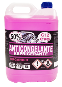 | ANTICONGELANTE 50% G12 Características - Refrigerante diluido de uso directo para el mercado de la automoción y vehículo industrial. - No contiene nitritos, aminas, fosfatos ni boratos. - Anti cavitación. - No producen precipitados y por tanto mantiene los conductos siempre limpios. - Protege todas las partes que componen el circuito de refrigeración. - Gran capacidad de transmitir el calor a la atmósfera. - Aumento del punto de ebullición y descenso del punto de congelación. - Nula formación de espuma. - Punto de congelación: -35ºC - Punto Ebullición: 145ºC. Ventajas - Es menos peligroso para las personas que un anticongelante convencional y más respetuoso con el medio ambiente. - Evita la formación de espumas contraindicadas en la circulación de refrigerante dentro del sistema de refrigeración. Beneficios - Cumplen con las últimas normas de los fabricantes de la automoción y el vehículo industrial.