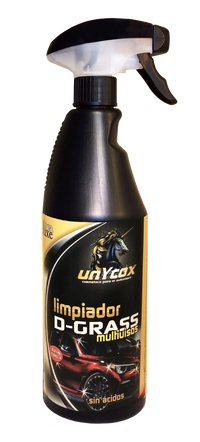 Con el Limpiador DGRASS puede limpiar la carrocería de su coche disolviendo las trazas de los insectos, grasa, óxido, restos de pegatinas, manchas de gasoil..., compatible con la limpieza del hogar (cocinas, sofás, alfombras, etc...) Indicaciones de peligro: Met. Corr. 1: H290 - Puede ser corrosivo para los metales. P101 Si se necesita consejo médico, tener a mano el envase o la etiqueta. P102 Mantener fuera del alcance de los niños. CÓDIGO: DGS |